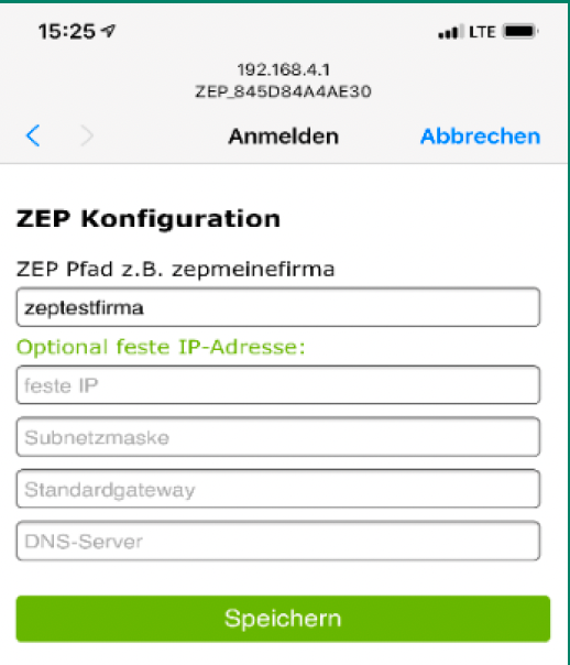 Falls Ihr ZEP mit dieser Konfiguration nicht erreichbar ist, kommt eine entsprechende Meldung und das ZEP Terminal kommt erneut in den Konfigurationsmodus. Mögliche Maßnahmen: